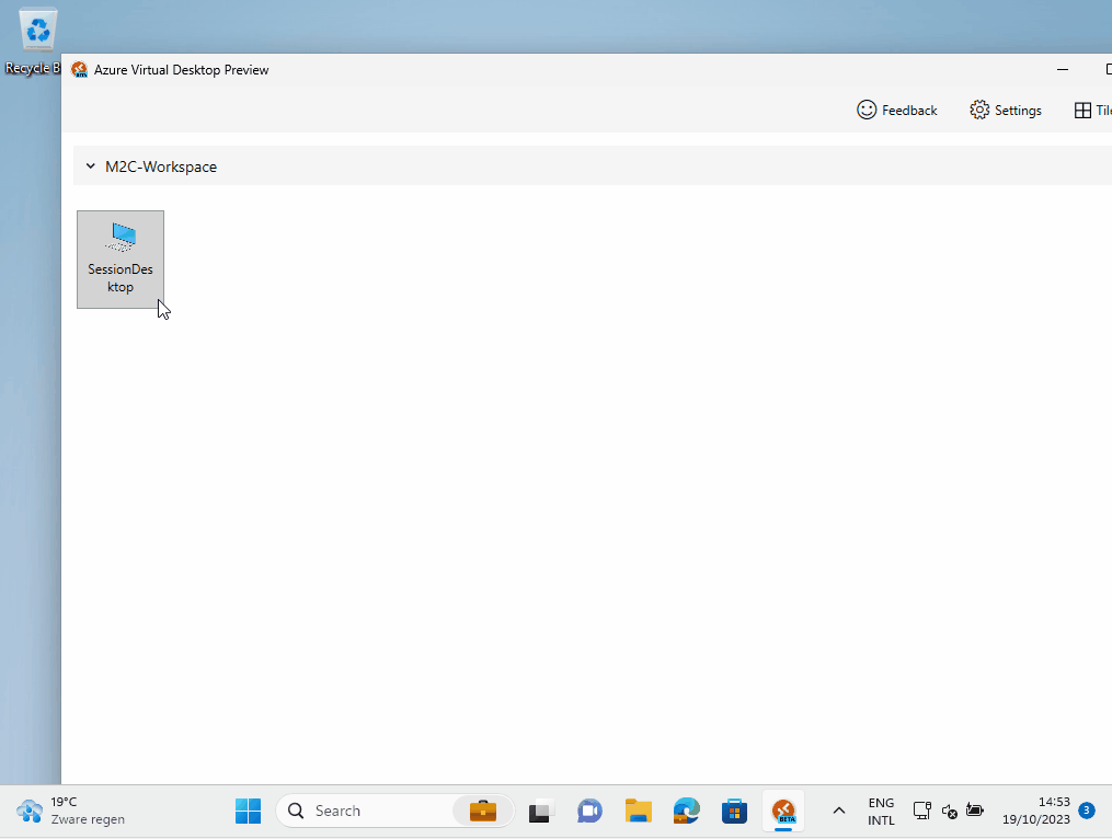 Now we are going to check what the users see when they sign-in with the client for AVD. In this scenario I used the Azure Virtual Desktop (preview) Microsoft Store client. This client is designed for Azure Virtual Desktop and supports the passwordless experience. The user has logged on with a PIN code on the machine to authenticate with the AVD session host. So Windows Hello for Business must be configured on the device.