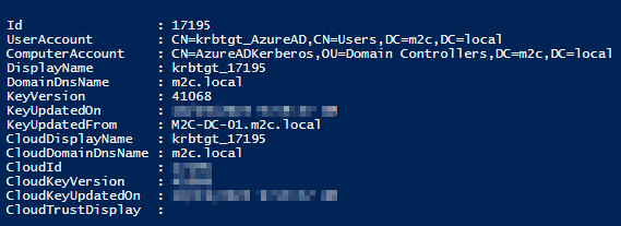 Set-AzureADKerberosServer -Domain $domain -UserPrincipalName $userPrincipalName- If the script has run without any issues you can perform a check of the Kerberos Server object with the following script. Then you get the following output and it is also visible in Active Directory.