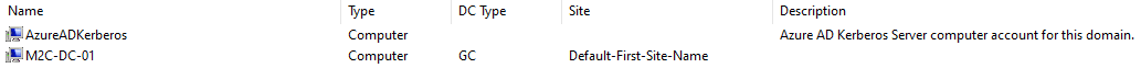 Set-AzureADKerberosServer -Domain $domain -UserPrincipalName $userPrincipalName- If the script has run without any issues you can perform a check of the Kerberos Server object with the following script. Then you get the following output and it is also visible in Active Directory.